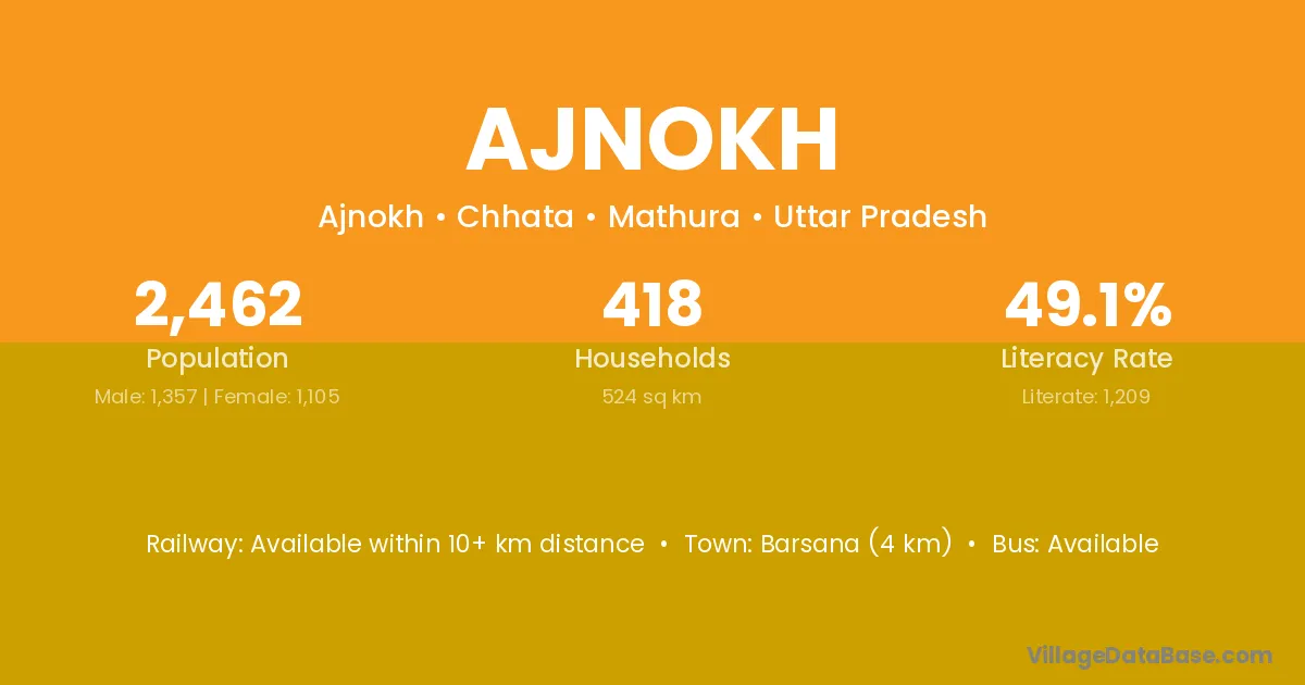 Barsana (4 km) is the nearest town to Ajnokh village for major economic activities and is located approximately 4 km away.