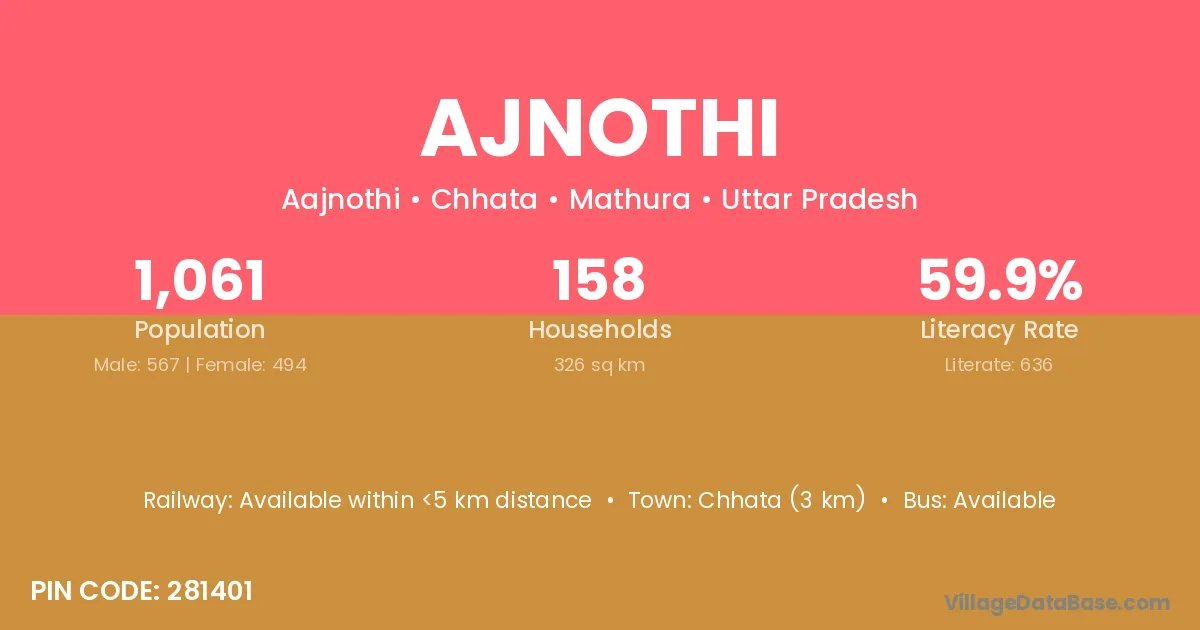 Chhata (3 km) is the nearest town to Ajnothi village for major economic activities and is located approximately 3 km away.