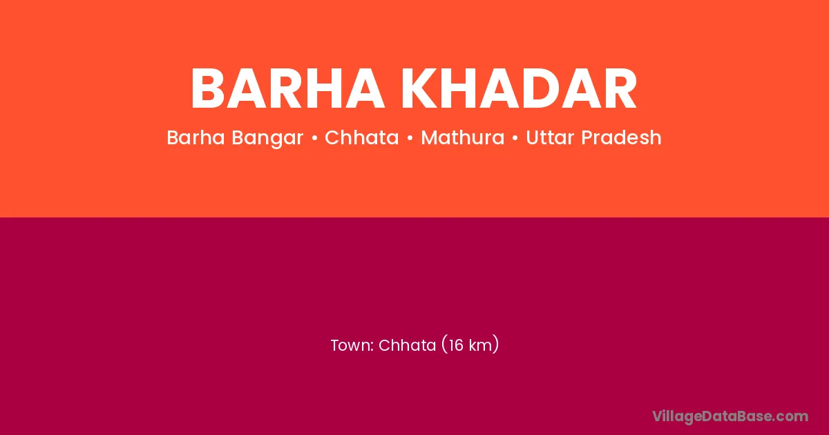 Chhata (16 km) is the nearest town to Barha Khadar village for major economic activities and is located approximately 16 km away.