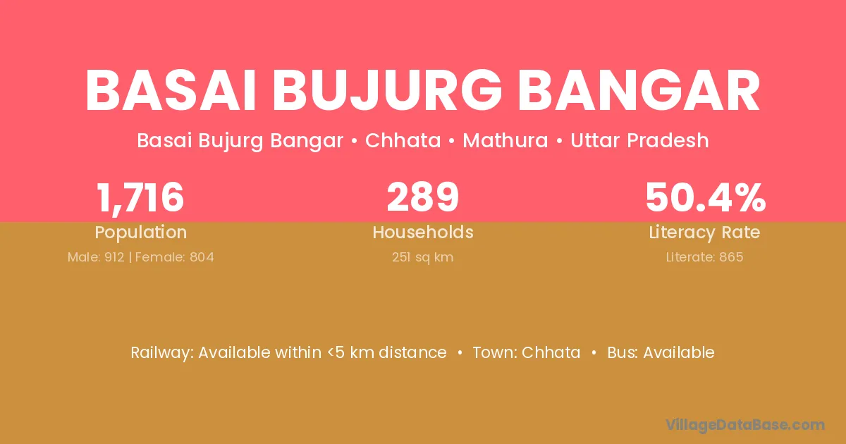 Basai Bujurg Bangar village has a total population of 1,716 people, of which 912 are males and 804 are females.