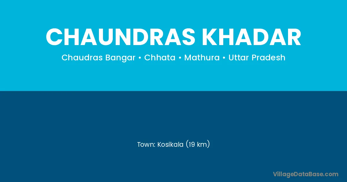 Kosikala (19 km) is the nearest town to Chaundras Khadar village for major economic activities and is located approximately 19 km away.