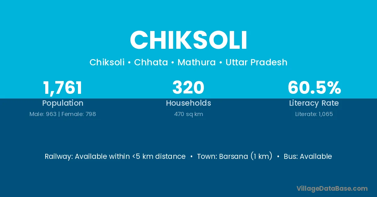Barsana (1 km) is the nearest town to Chiksoli village for major economic activities and is located approximately 1 km away.