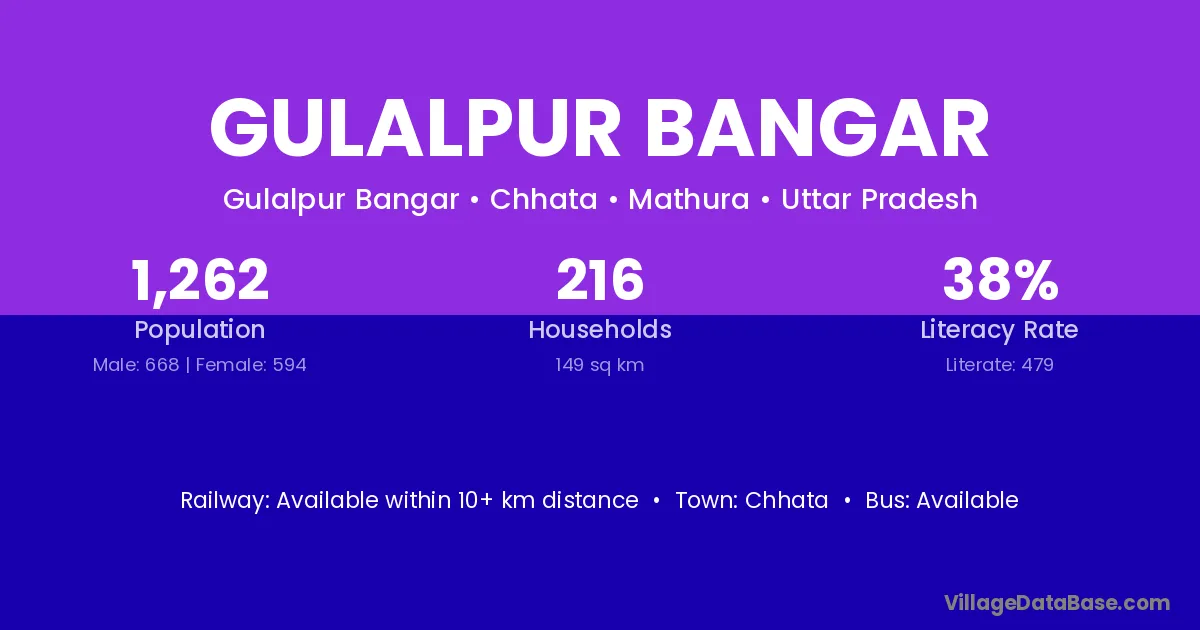 Gulalpur Bangar village has a total population of 1,262 people, of which 668 are males and 594 are females.
