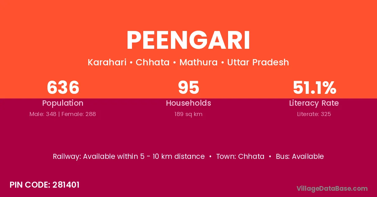 According to Census 2011 information, the village code of Peengari village is 281401.