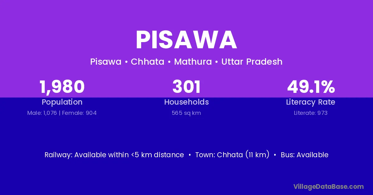 Chhata (11 km) is the nearest town to Pisawa village for major economic activities and is located approximately 11 km away.