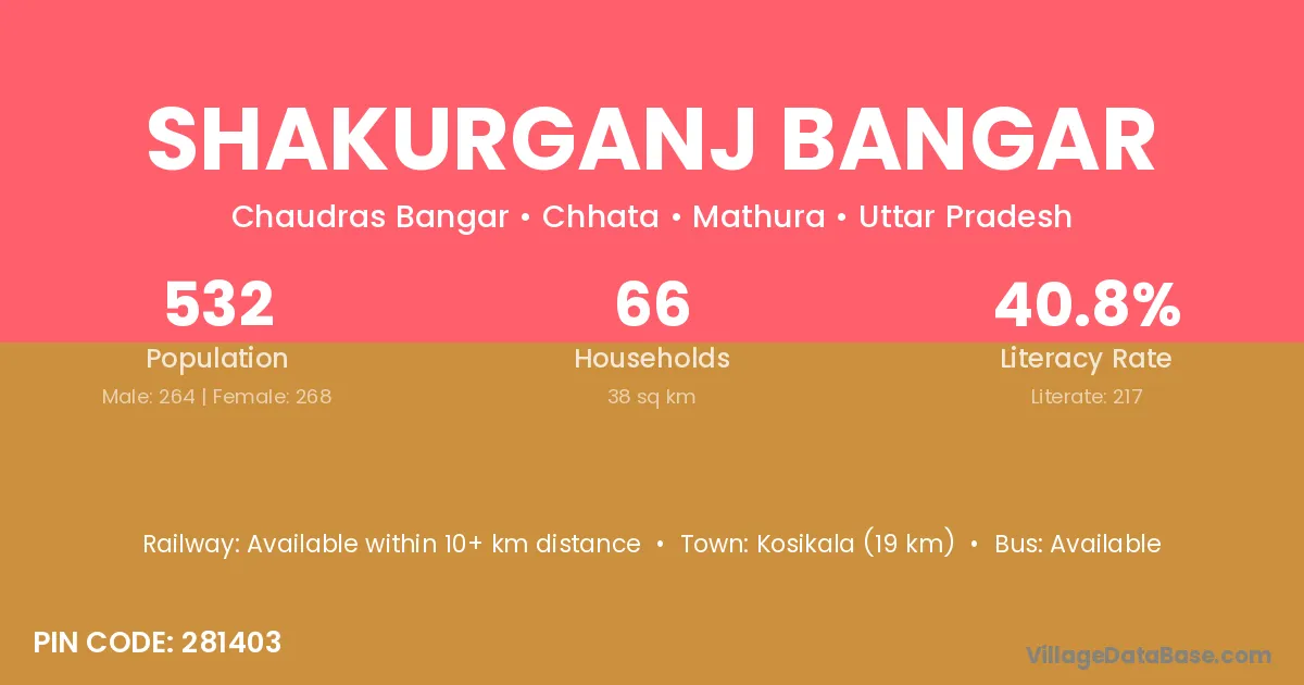 Shakurganj Bangar village has a total population of 532 people, of which 264 are males and 268 are females.