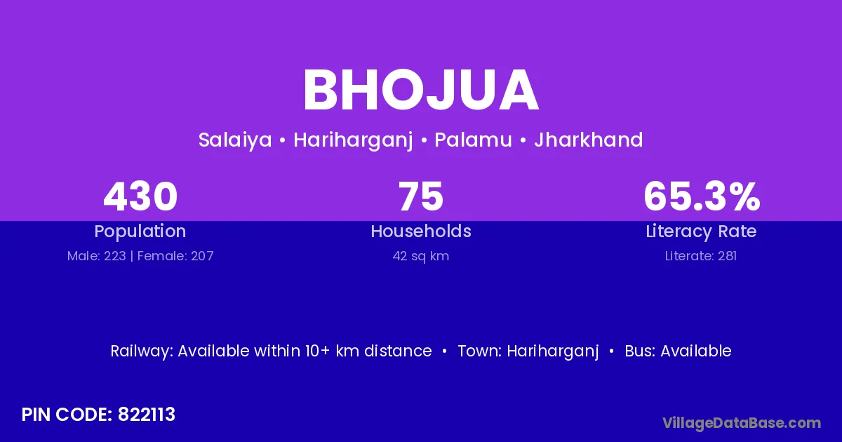 Bhojua village has a total population of 970 people, of which 530 are males and 440 are females.