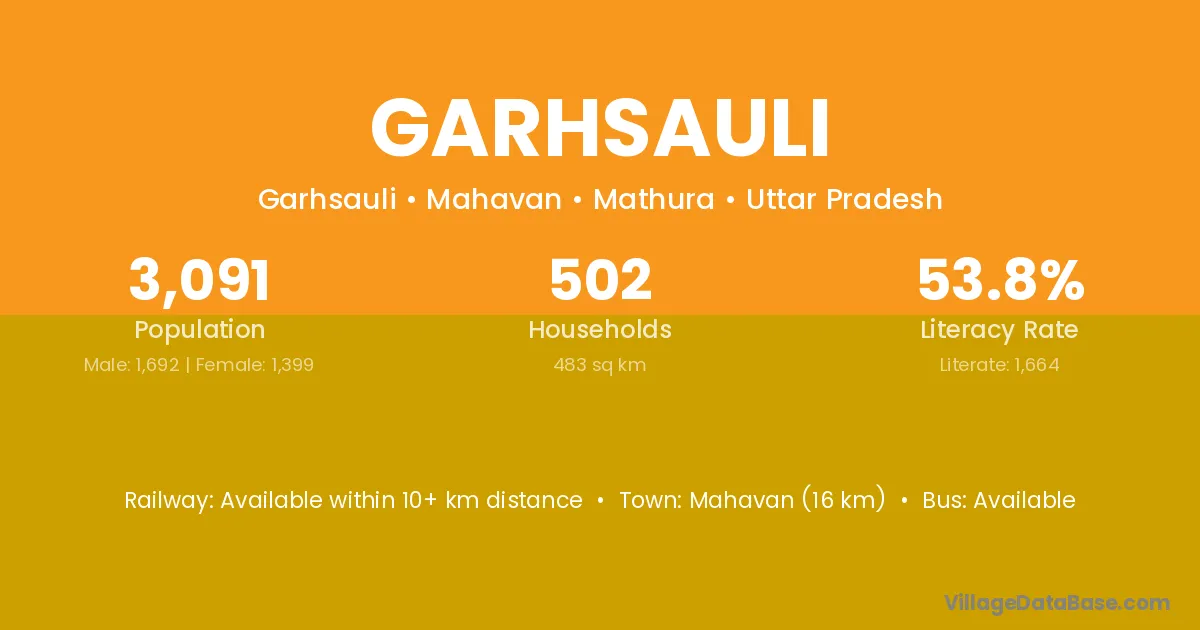 Mahavan (16 km) is the nearest town to Garhsauli village for major economic activities and is located approximately 16 km away.