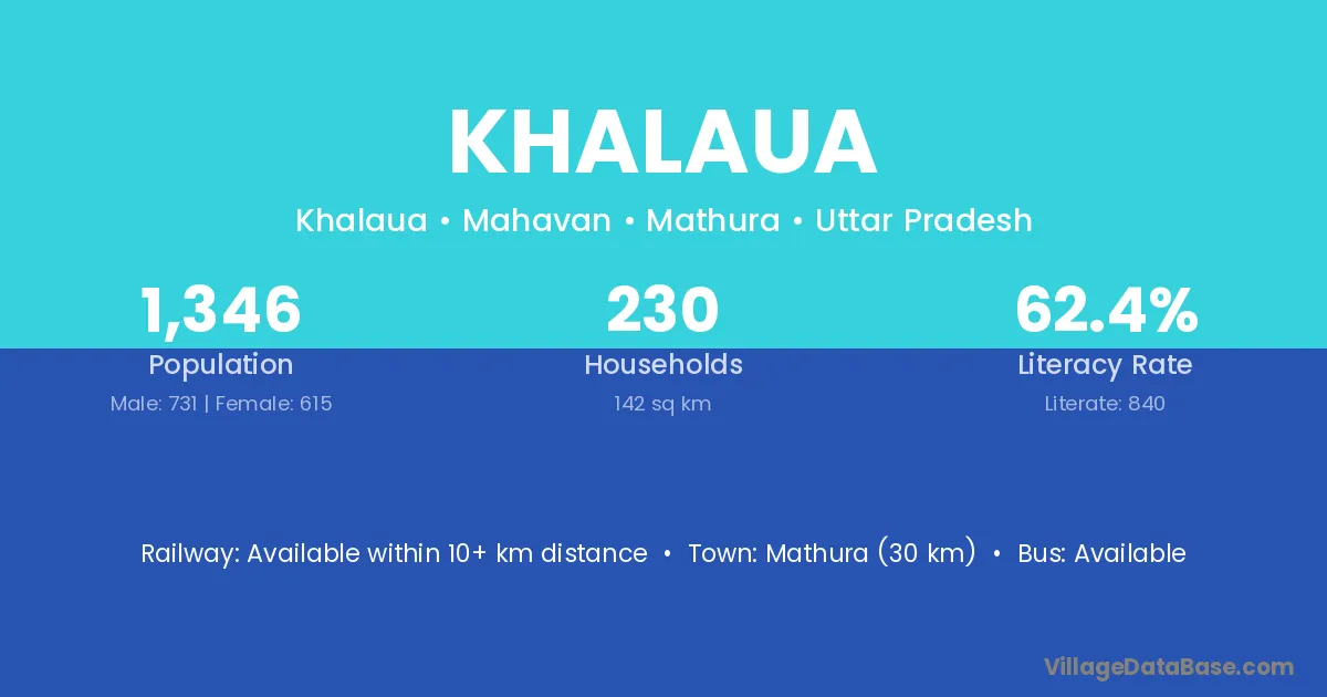 Mathura (30 km) is the nearest town to Khalaua village for major economic activities and is located approximately 30 km away.
