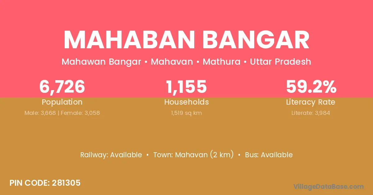 Mahavan (2 km) is the nearest town to Mahaban Bangar village for major economic activities and is located approximately 2 km away.