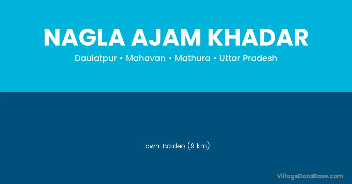 Baldeo (9 km) is the nearest town to Nagla Ajam Khadar village for major economic activities and is located approximately 9 km away.