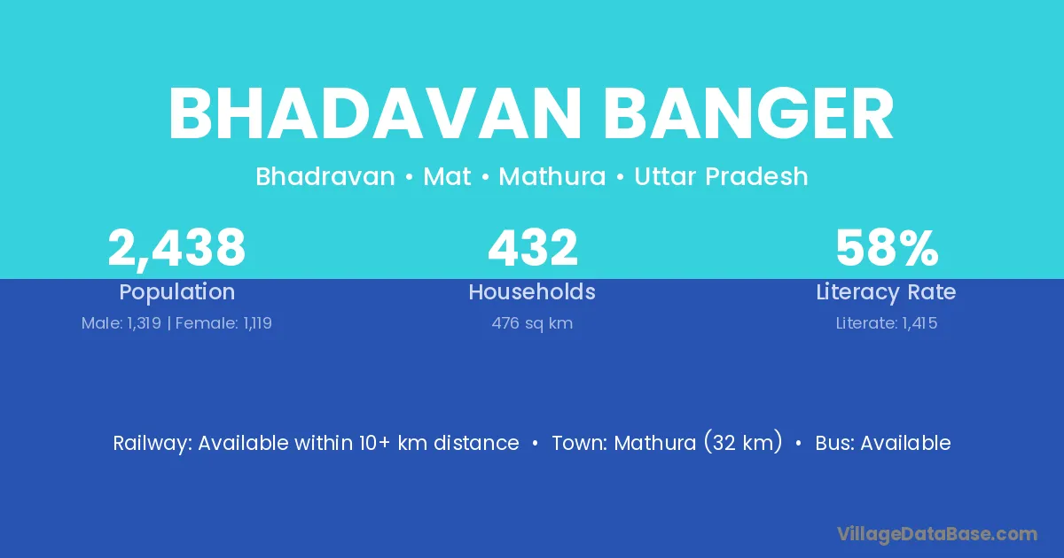 Mathura (32 km) is the nearest town to Bhadavan Banger village for major economic activities and is located approximately 32 km away.