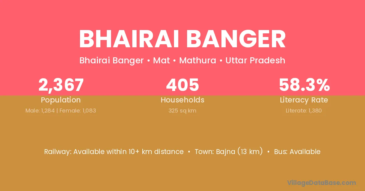 Bajna (13 km) is the nearest town to Bhairai Banger village for major economic activities and is located approximately 13 km away.