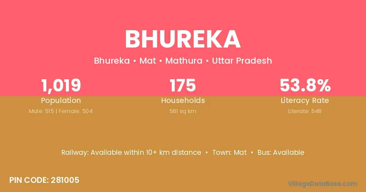 According to Census 2011 information, the village code of Bhureka village is 281005.