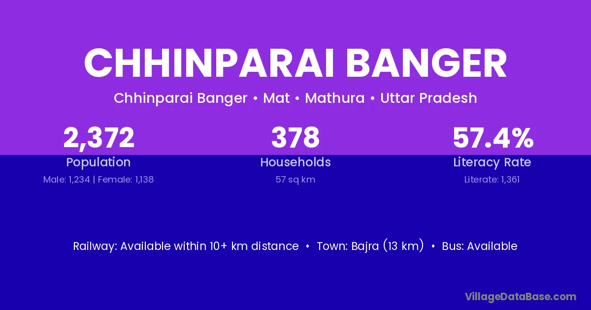 Bajra (13 km) is the nearest town to Chhinparai Banger village for major economic activities and is located approximately 13 km away.