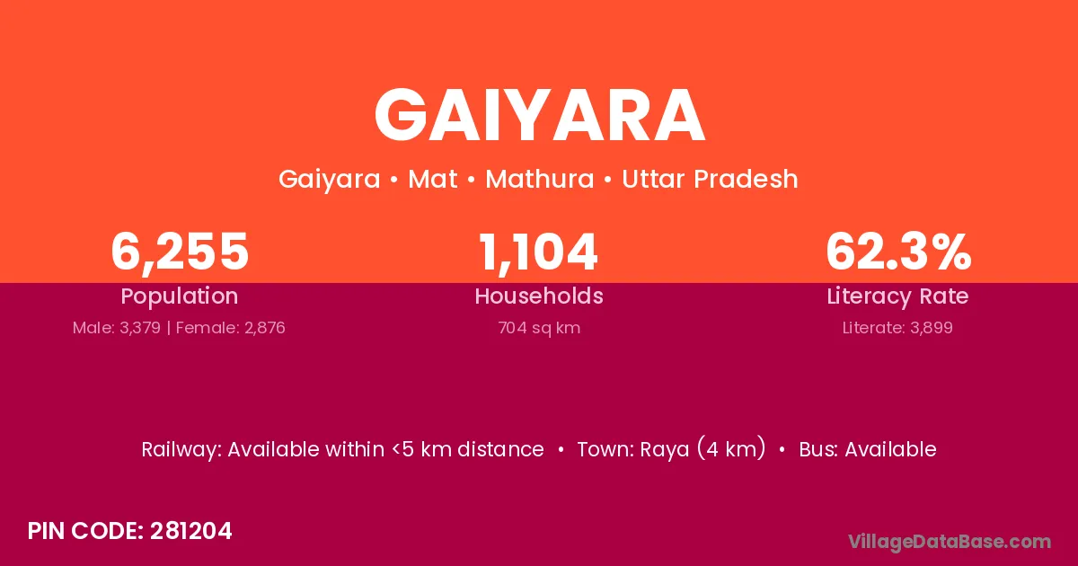Raya (4 km) is the nearest town to Gaiyara village for major economic activities and is located approximately 4 km away.