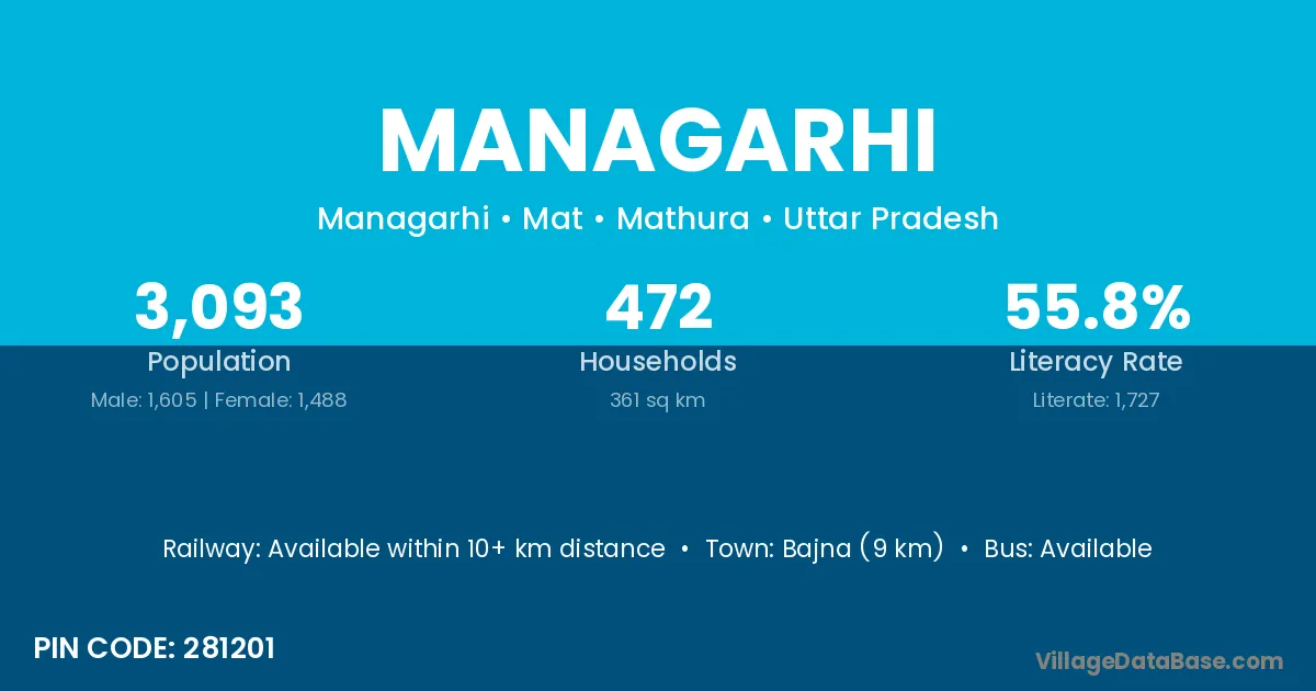 Bajna (9 km) is the nearest town to Managarhi village for major economic activities and is located approximately 9 km away.