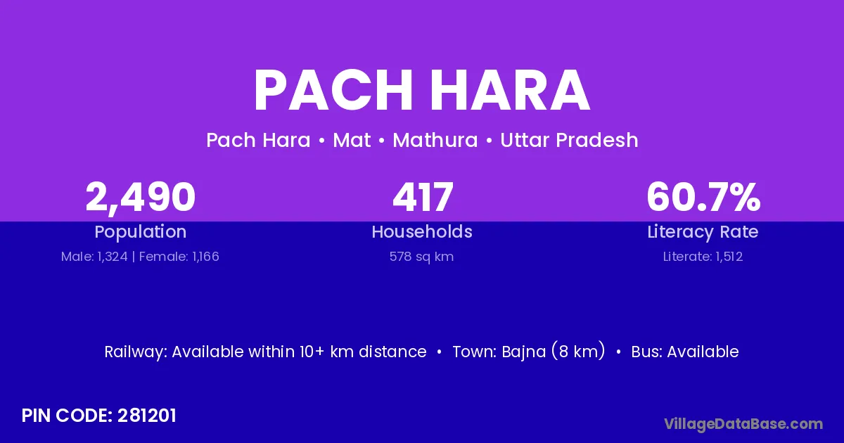 Bajna (8 km) is the nearest town to Pach Hara village for major economic activities and is located approximately 8 km away.