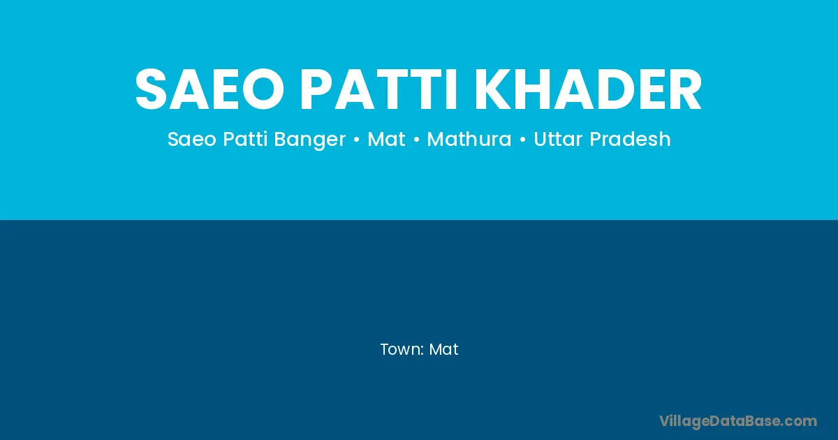 Saeo Patti Khader village is located in the Mat Tehsil of the Mathura district in Uttar Pradesh .