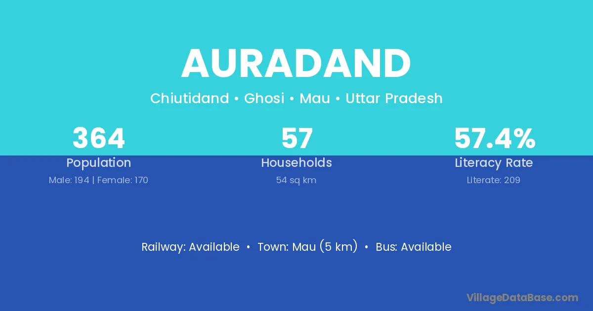 Mau (5 km) is the nearest town to Auradand village for major economic activities and is located approximately 5 km away.