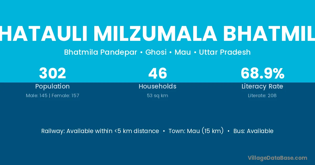 Bhatauli Milzumala Bhatmila village has a total population of 302 people, of which 145 are males and 157 are females.