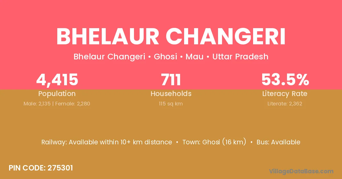 Ghosi (16 km) is the nearest town to Bhelaur Changeri village for major economic activities and is located approximately 16 km away.