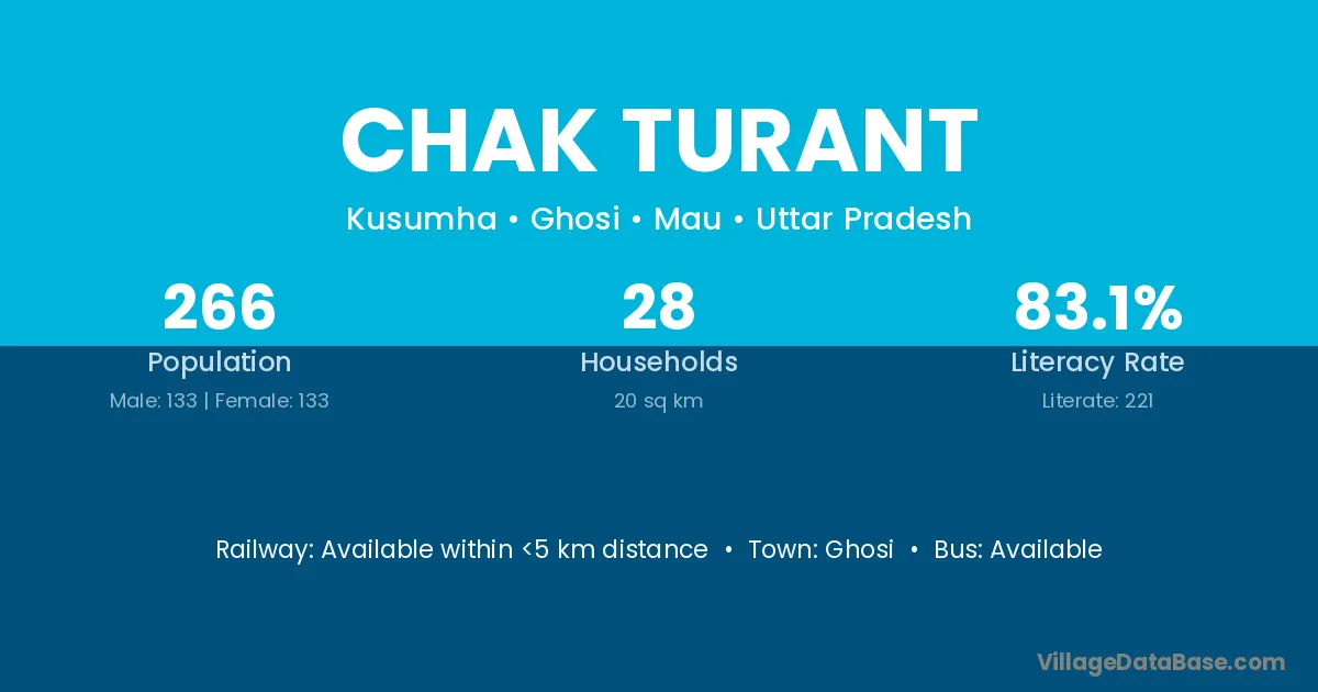 Ghosi is the nearest town to Chak Turant village for major economic activities