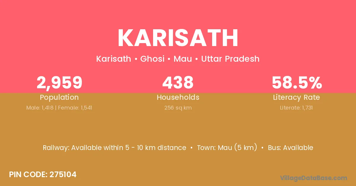 Mau (5 km) is the nearest town to Karisath village for major economic activities and is located approximately 5 km away.