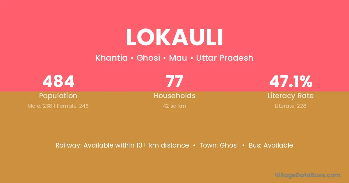 Lokauli village has a total population of 484 people, of which 238 are males and 246 are females.