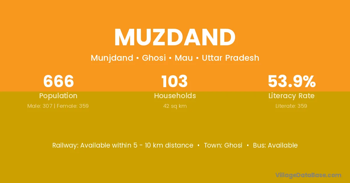 Muzdand village has a total population of 666 people, of which 307 are males and 359 are females.