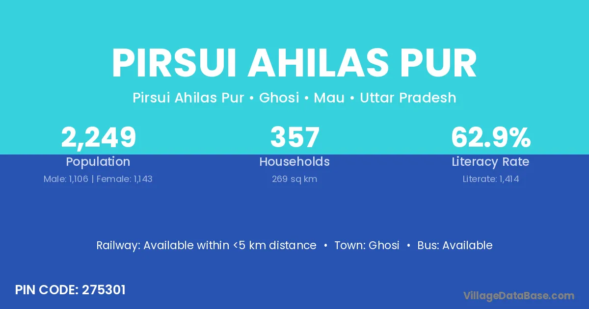 There are approximately 357 households in Pirsui Ahilas Pur village.
