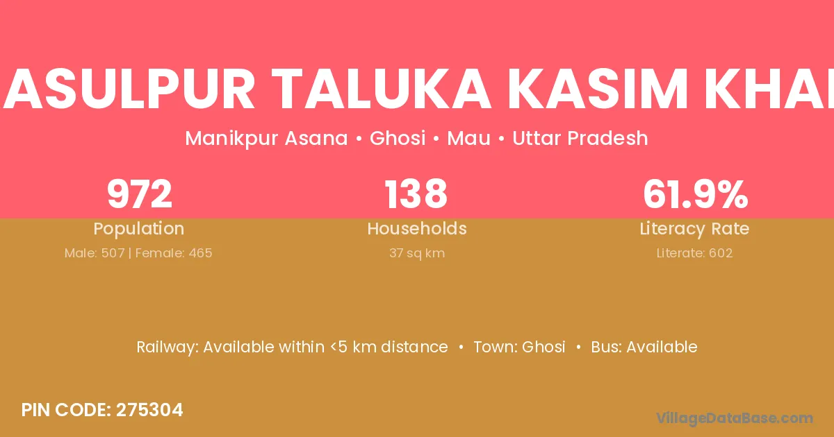 Ghosi is the nearest town to Rasulpur Taluka Kasim Khan village for major economic activities