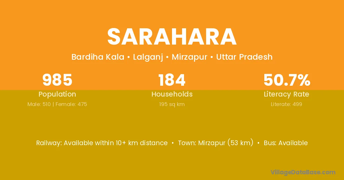 Dohari Ghat (5 km) is the nearest town to Sarahara village for major economic activities and is located approximately 5 km away.