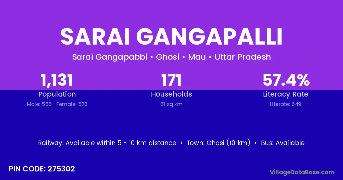 According to Census 2011 information, the village code of Sarai Gangapalli village is 275302.