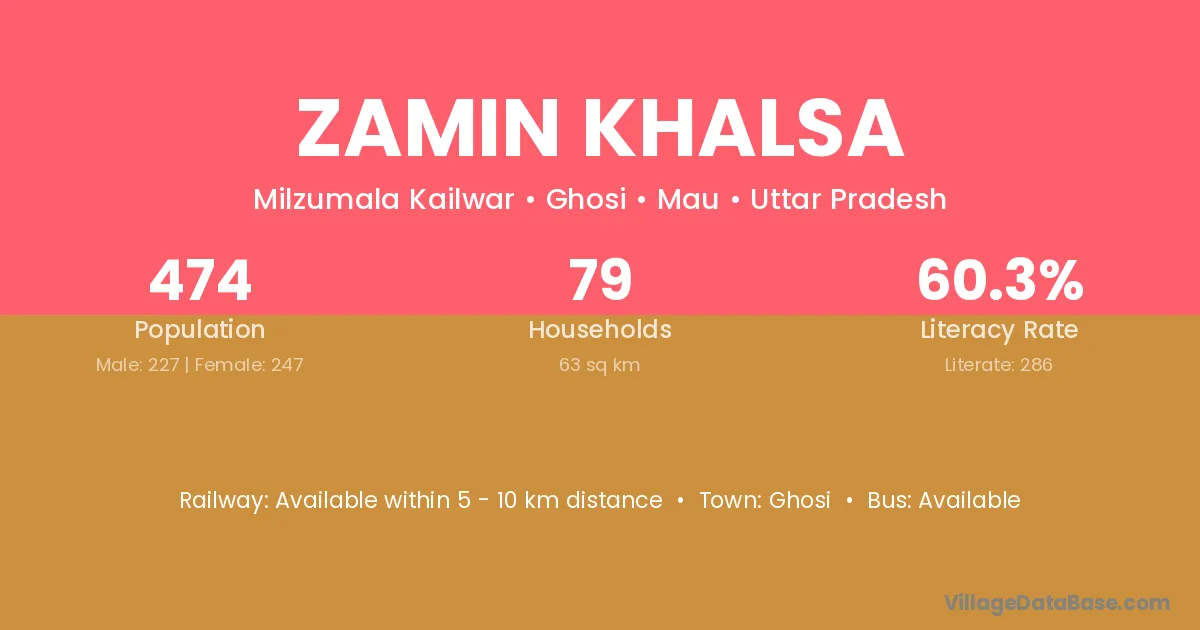 Zamin Khalsa village is located in the Ghosi Tehsil of the Mau district in Uttar Pradesh .
