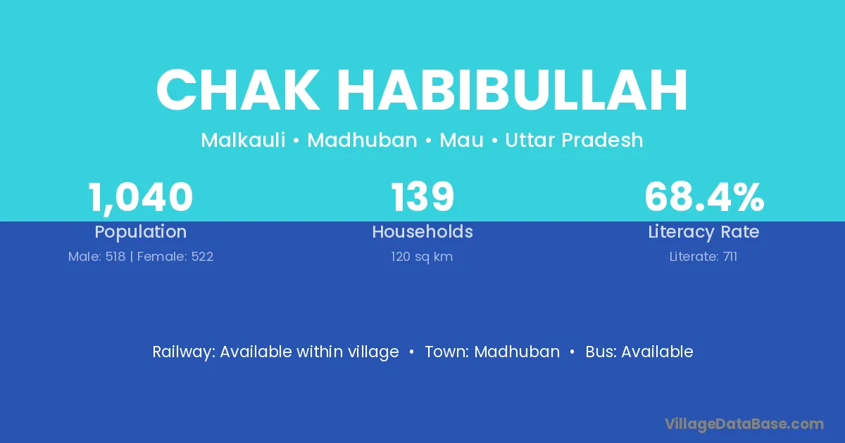 Chak Habibullah village has a total population of 1,040 people, of which 518 are males and 522 are females.