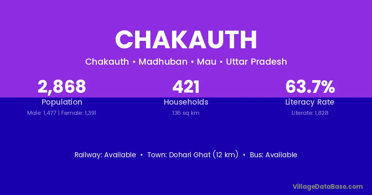 Dohari Ghat (12 km) is the nearest town to Chakauth village for major economic activities and is located approximately 12 km away.