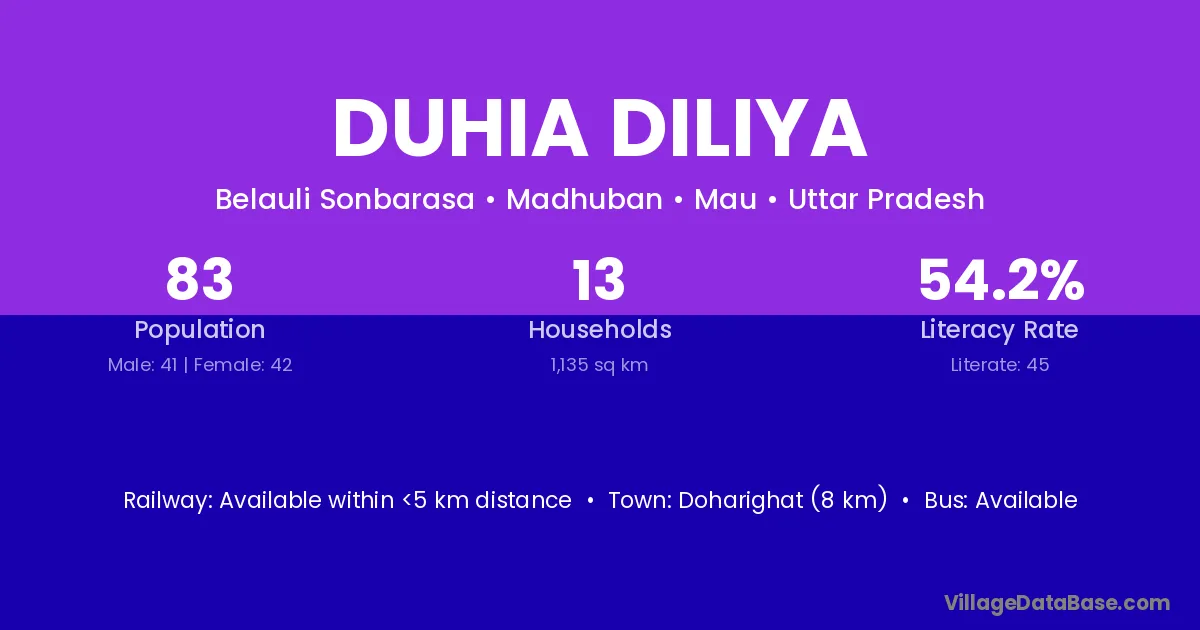 Duhia Diliya village has a total population of 83 people, of which 41 are males and 42 are females.
