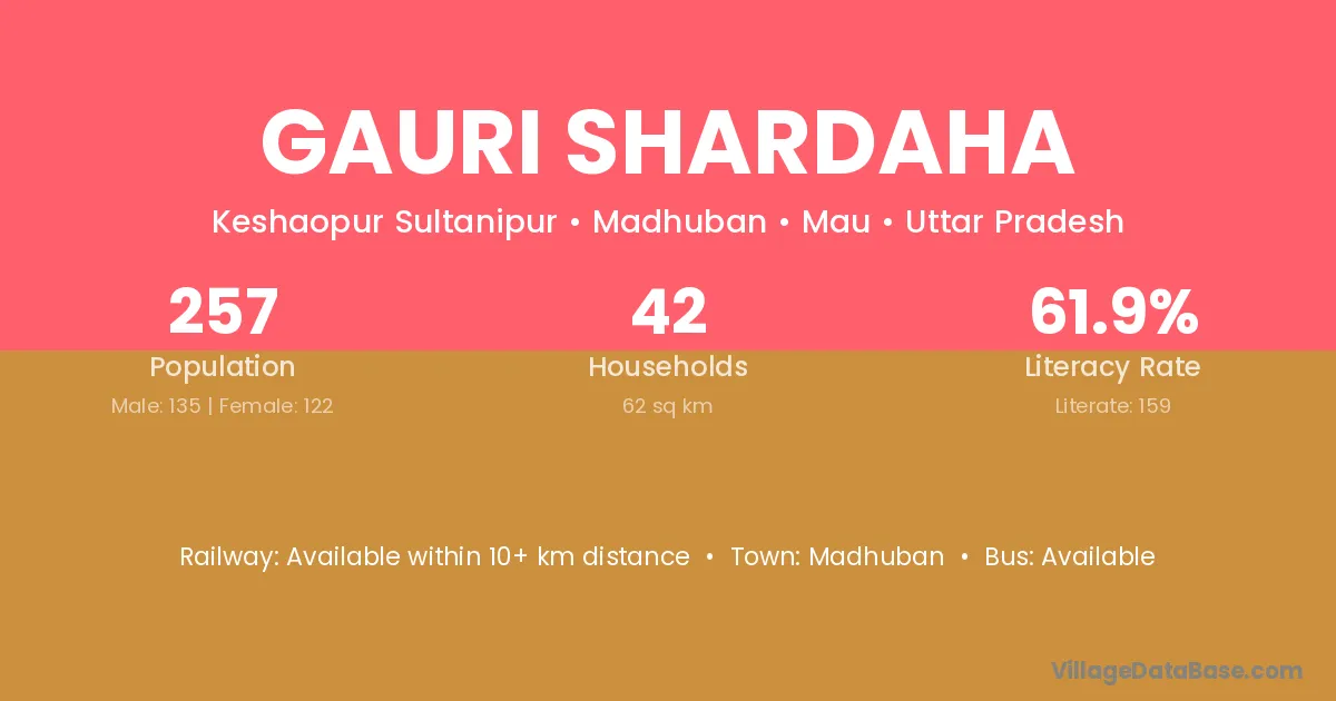 Gauri Shardaha village has a total population of 257 people, of which 135 are males and 122 are females.