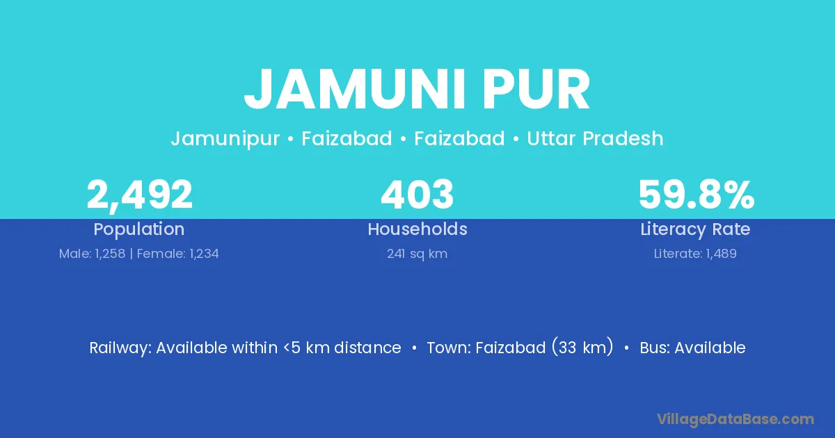 Dohari Ghat (10 km) is the nearest town to Jamuni Pur village for major economic activities and is located approximately 10 km away.
