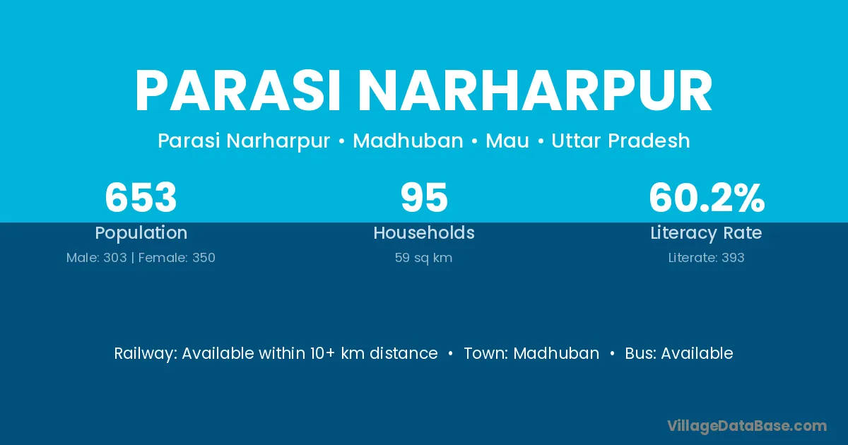 Parasi Narharpur village has a total population of 653 people, of which 303 are males and 350 are females.