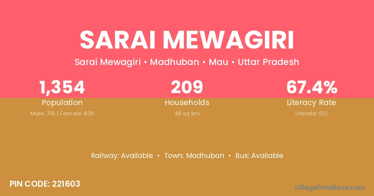 Sarai Mewagiri village has a total population of 1,354 people, of which 719 are males and 635 are females.