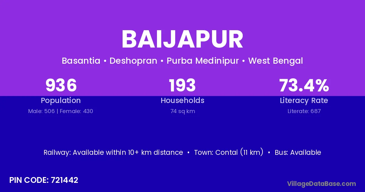 Baijapur village has a total population of 2,610 people, of which 1,374 are males and 1,236 are females.