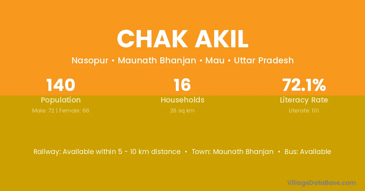 Maunath Bhanjan is the nearest town to Chak Akil village for major economic activities