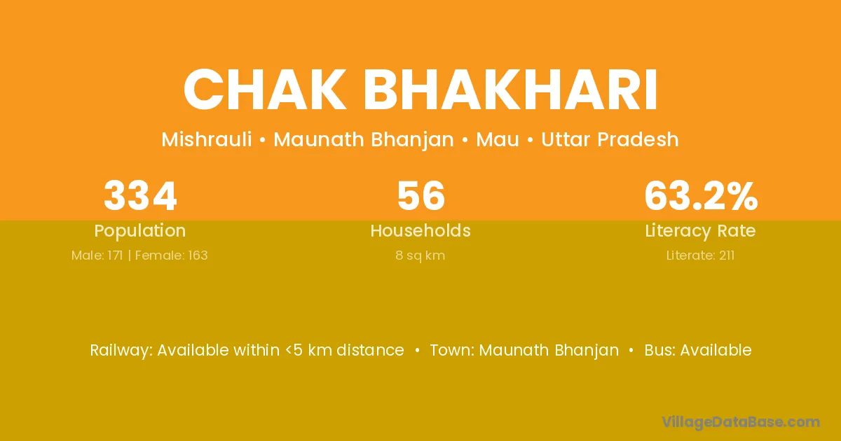 Chak Bhakhari village has a total population of 334 people, of which 171 are males and 163 are females.
