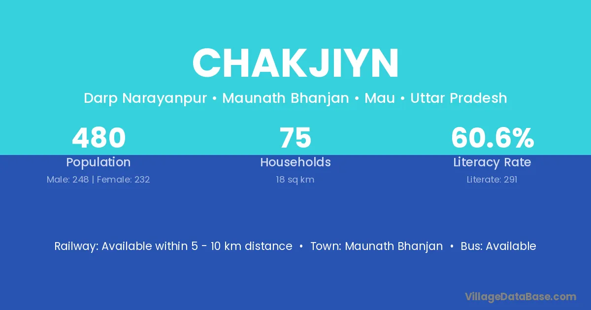 Maunath Bhanjan is the nearest town to Chakjiyn village for major economic activities