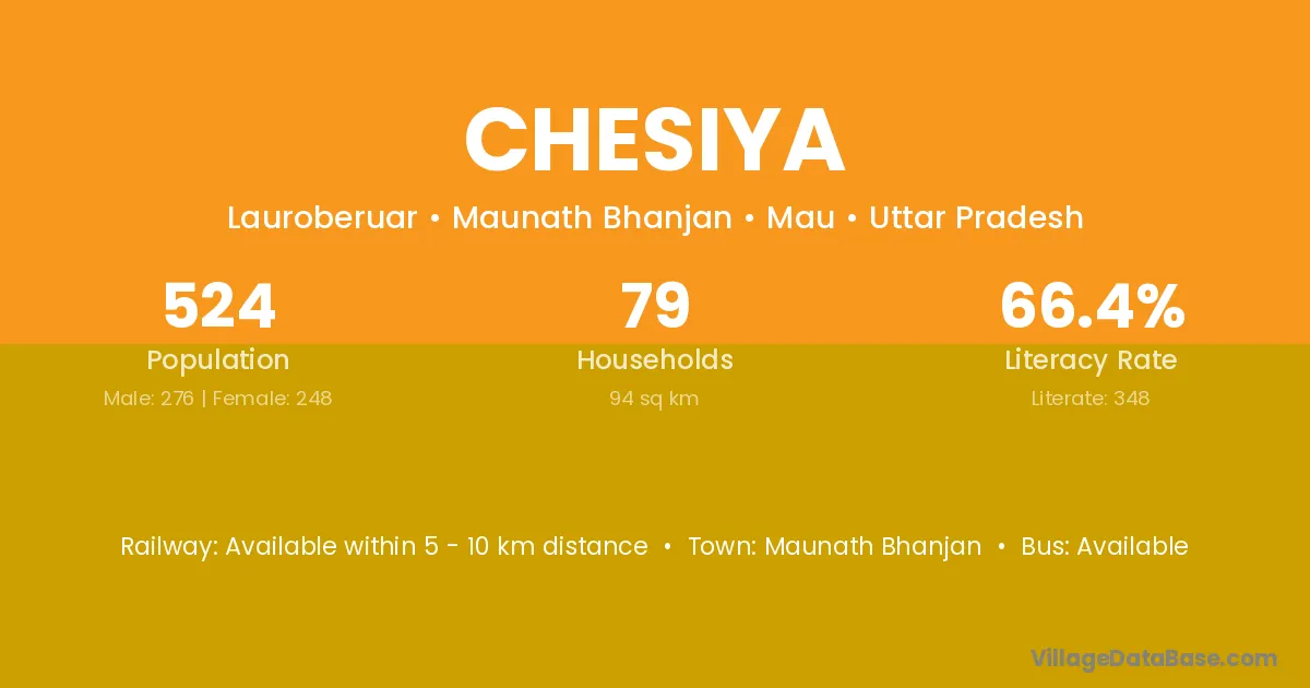 Chesiya village is located in the Maunath Bhanjan Tehsil of the Mau district in Uttar Pradesh .