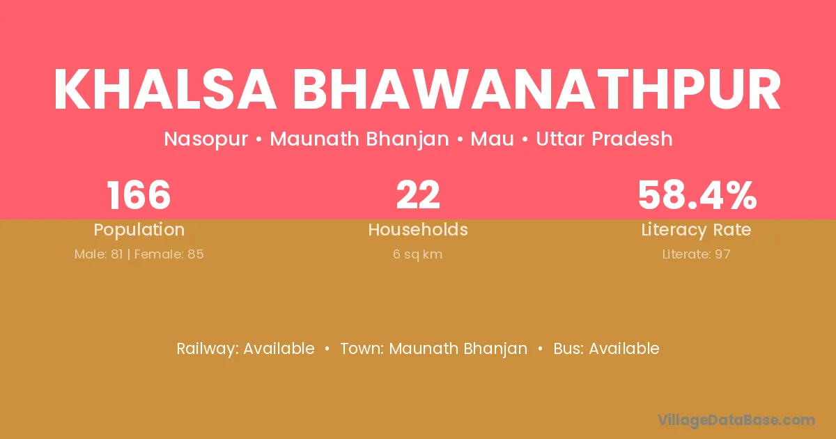 Maunath Bhanjan is the nearest town to Khalsa Bhawanathpur village for major economic activities