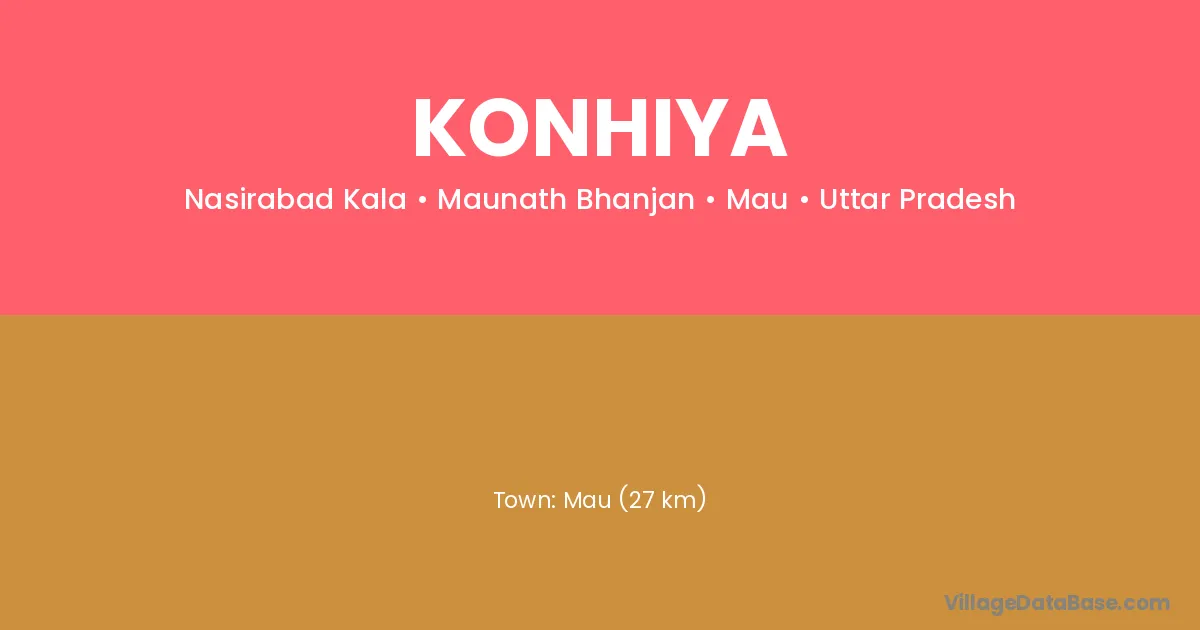 Mau (27 km) is the nearest town to Konhiya village for major economic activities and is located approximately 27 km away.