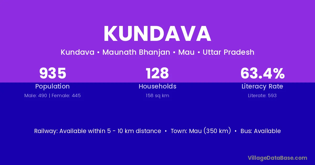 Kundava village has a total population of 935 people, of which 490 are males and 445 are females.